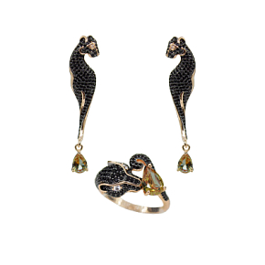 Комплект "Пантера", султанит, покрытие под золото, размеры кольца: 17, 18, 19, 20